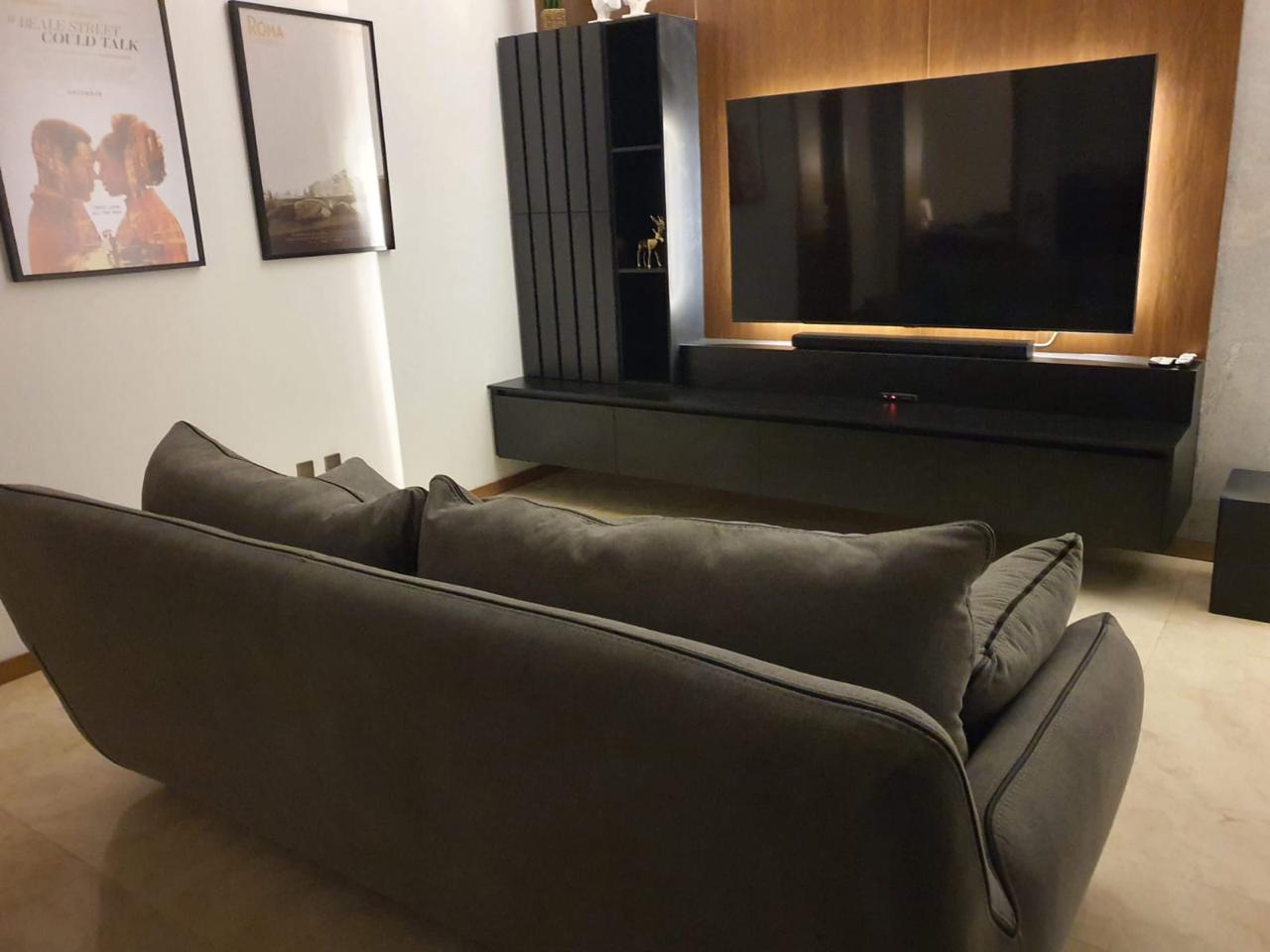 Recámara que puede funcionar como estudio o sala de tv, con baño