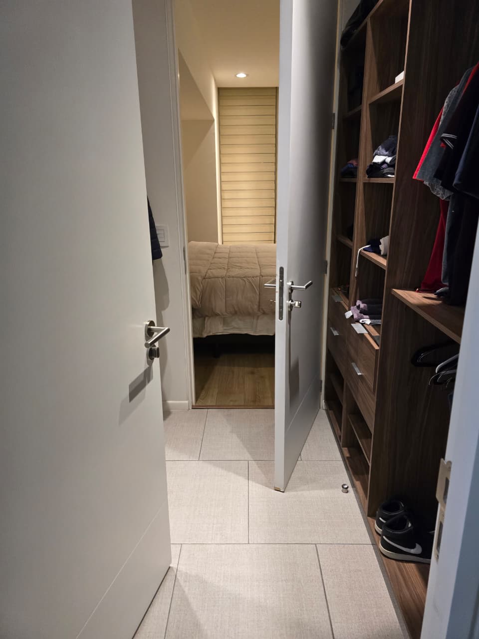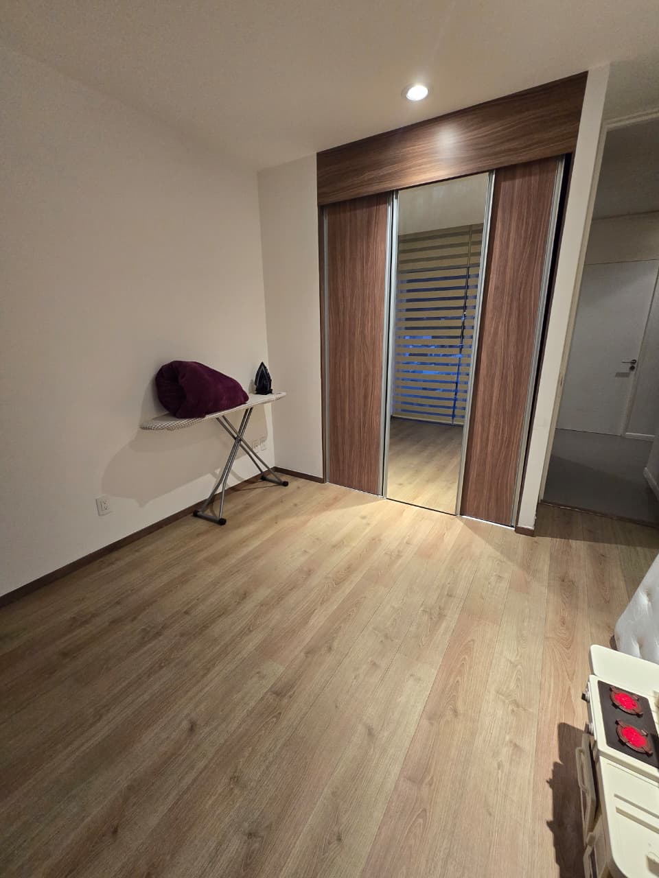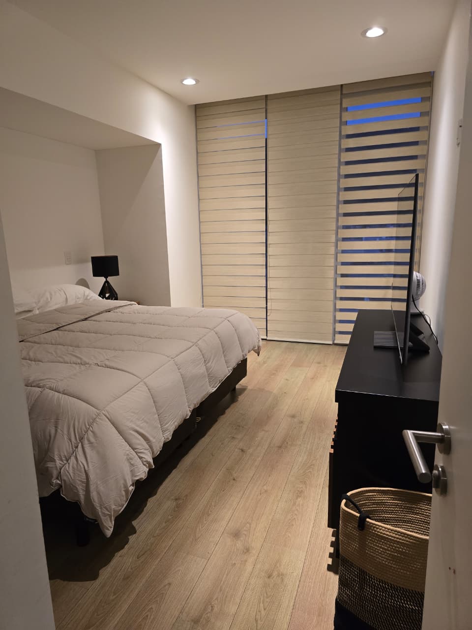 El departamento consta de dos recámaras: la principal, con un amplio vestidor y baño propio, y la segunda con un cómodo closet. Ambas recámaras y la sala-comedor.