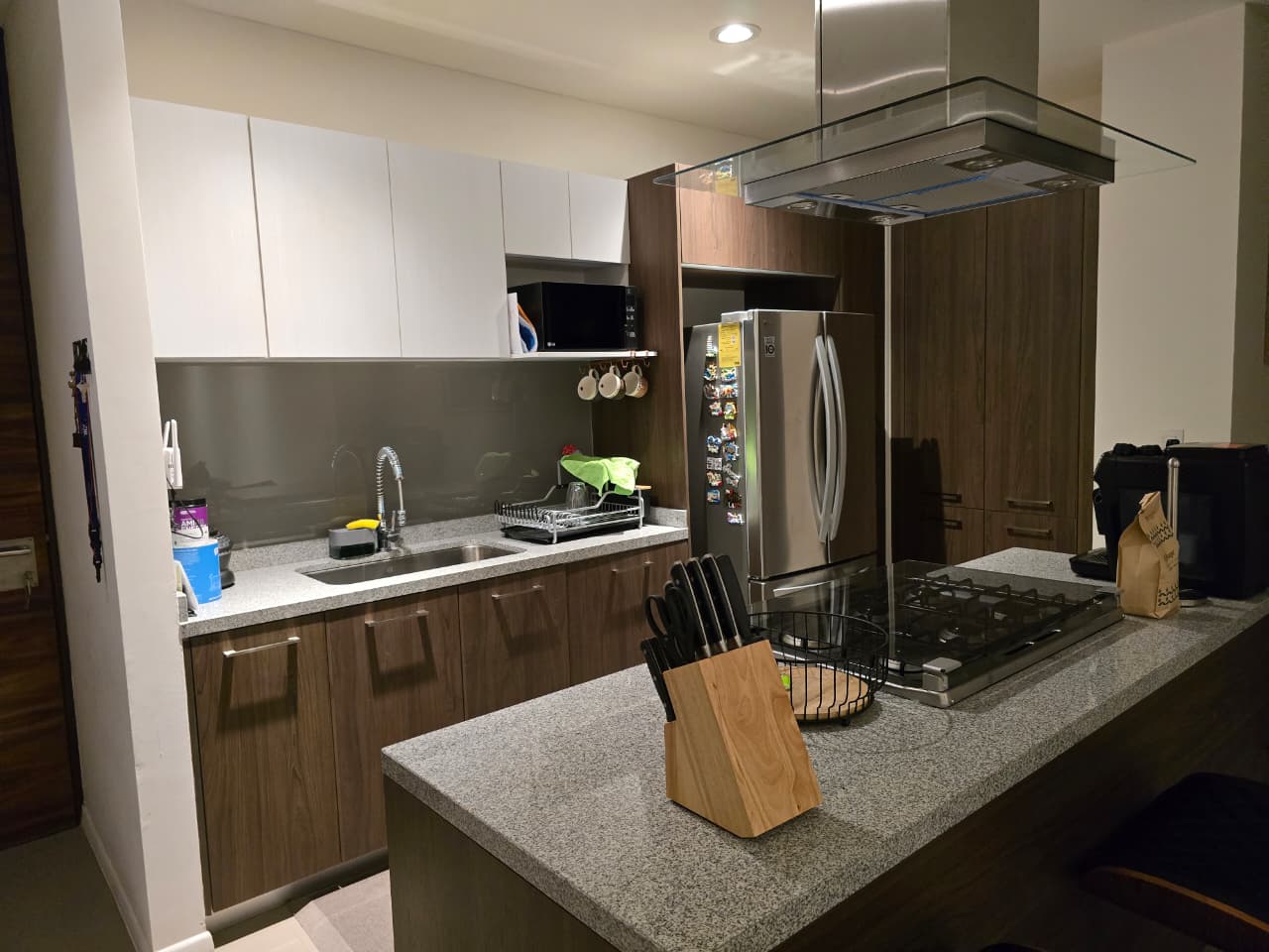 Cocina integral, y el espacio de sala-comedor es amplio y con excelente iluminación. Además, el departamento cuenta con un cuarto de lavado y un espacio de descanso para la servidumbre.